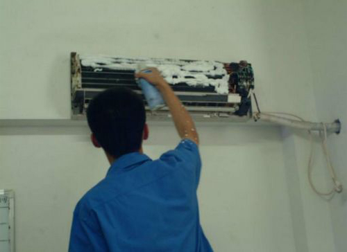 | 牧野空调维修师傅给牧野用户上门维修清洗空调。 |